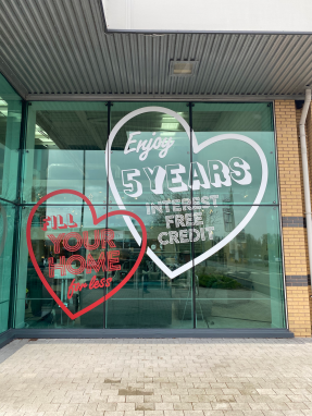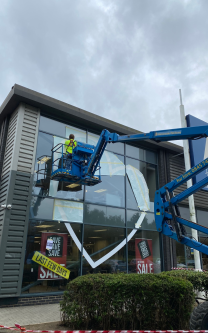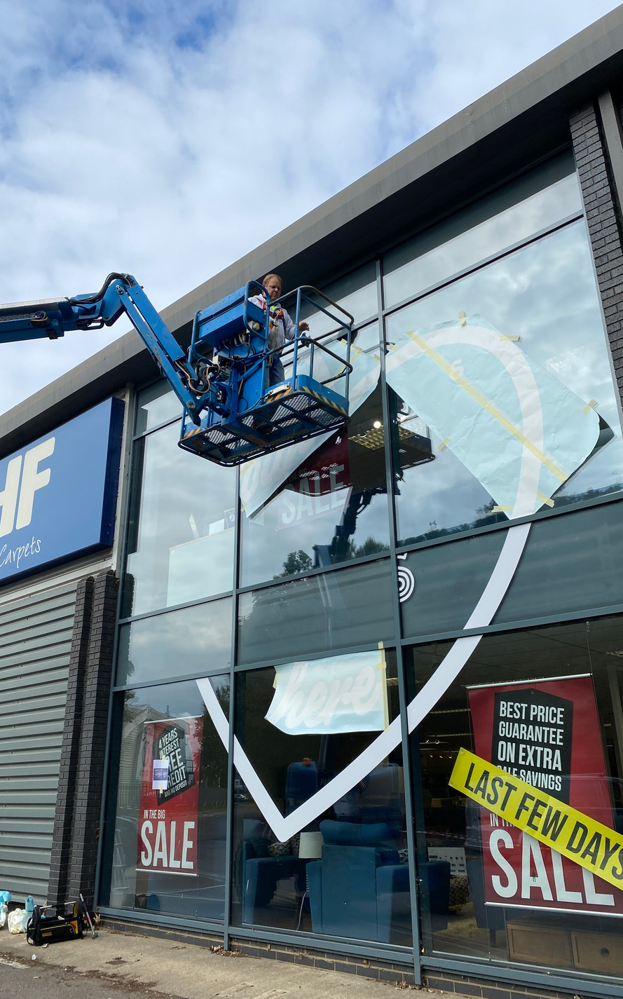 A giant jigsaw puzzle.... some of the externally applied cut vinyl graphic logos to store glazing panels, from a metre square to 6m square, creating a visually striking impact upon entering the retail parks.